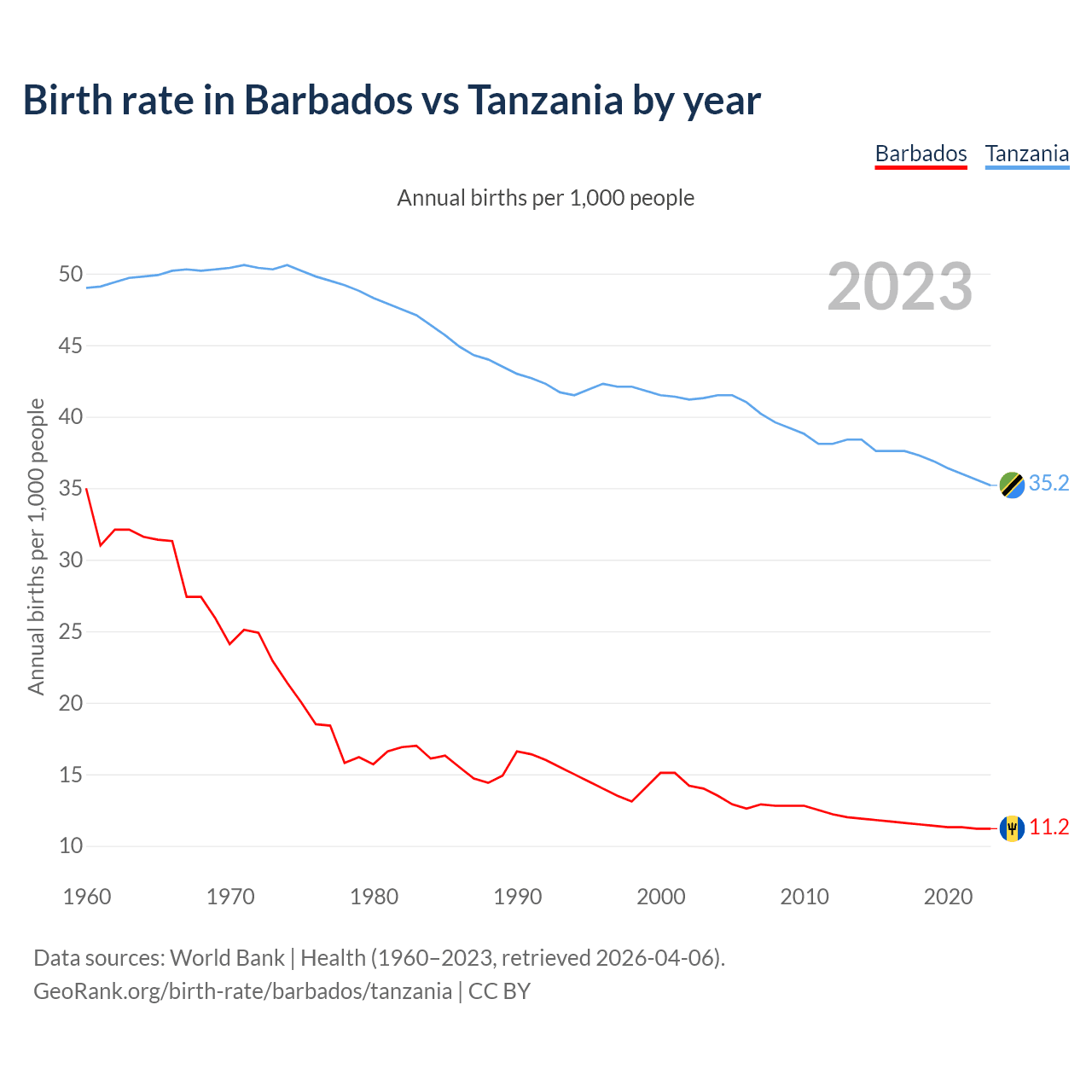 GeoRank.org/birth-rate/barbados/tanzania | CC BY