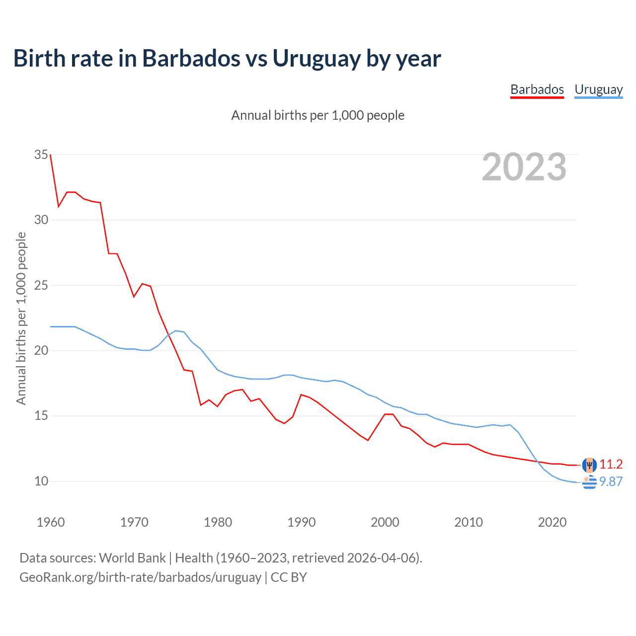 GeoRank.org/birth-rate/barbados/uruguay | CC BY