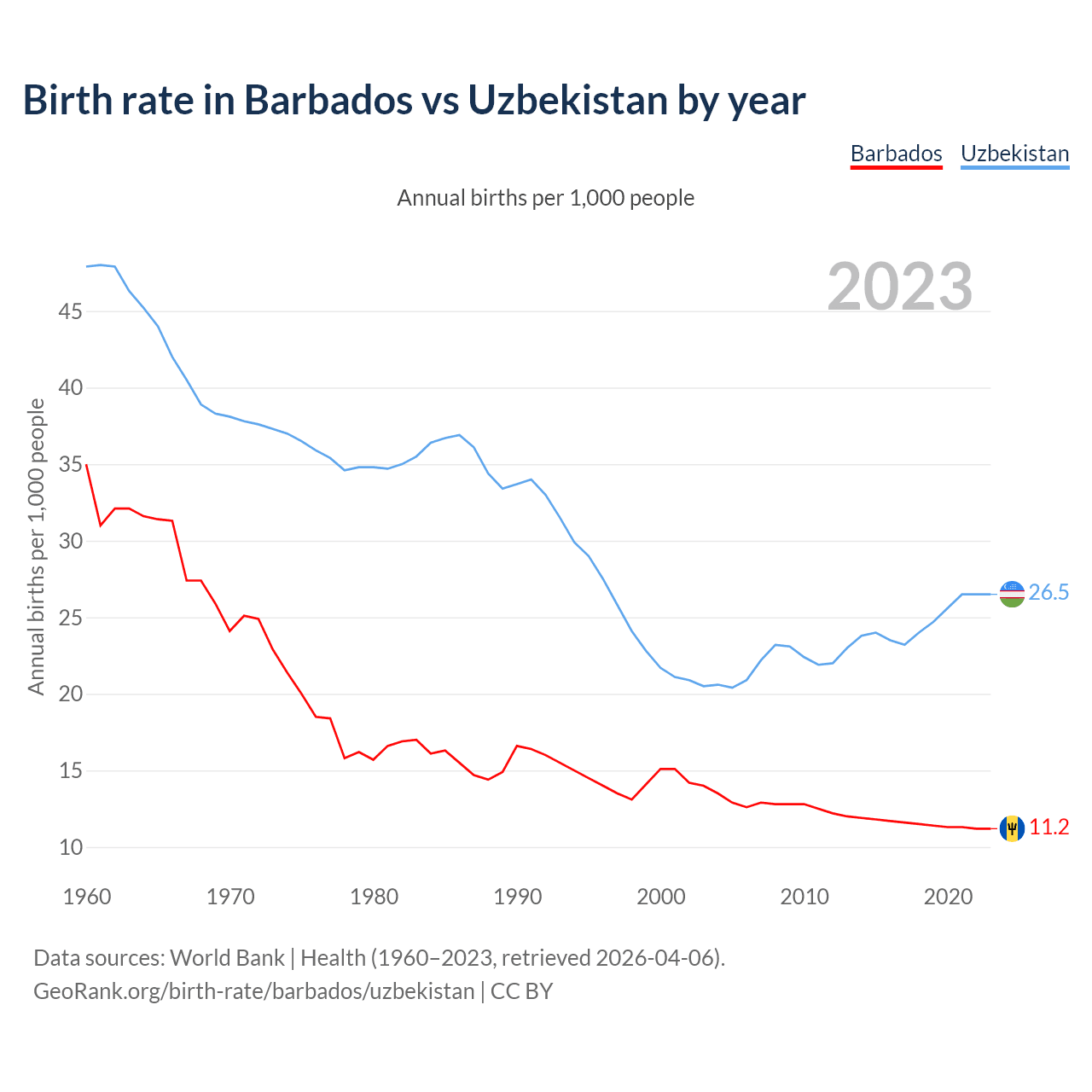 GeoRank.org/birth-rate/barbados/uzbekistan | CC BY