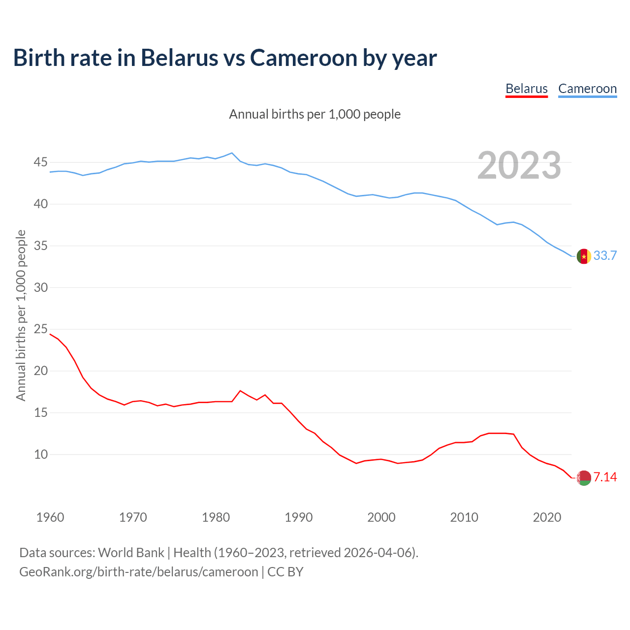 GeoRank.org/birth-rate/belarus/cameroon | CC BY