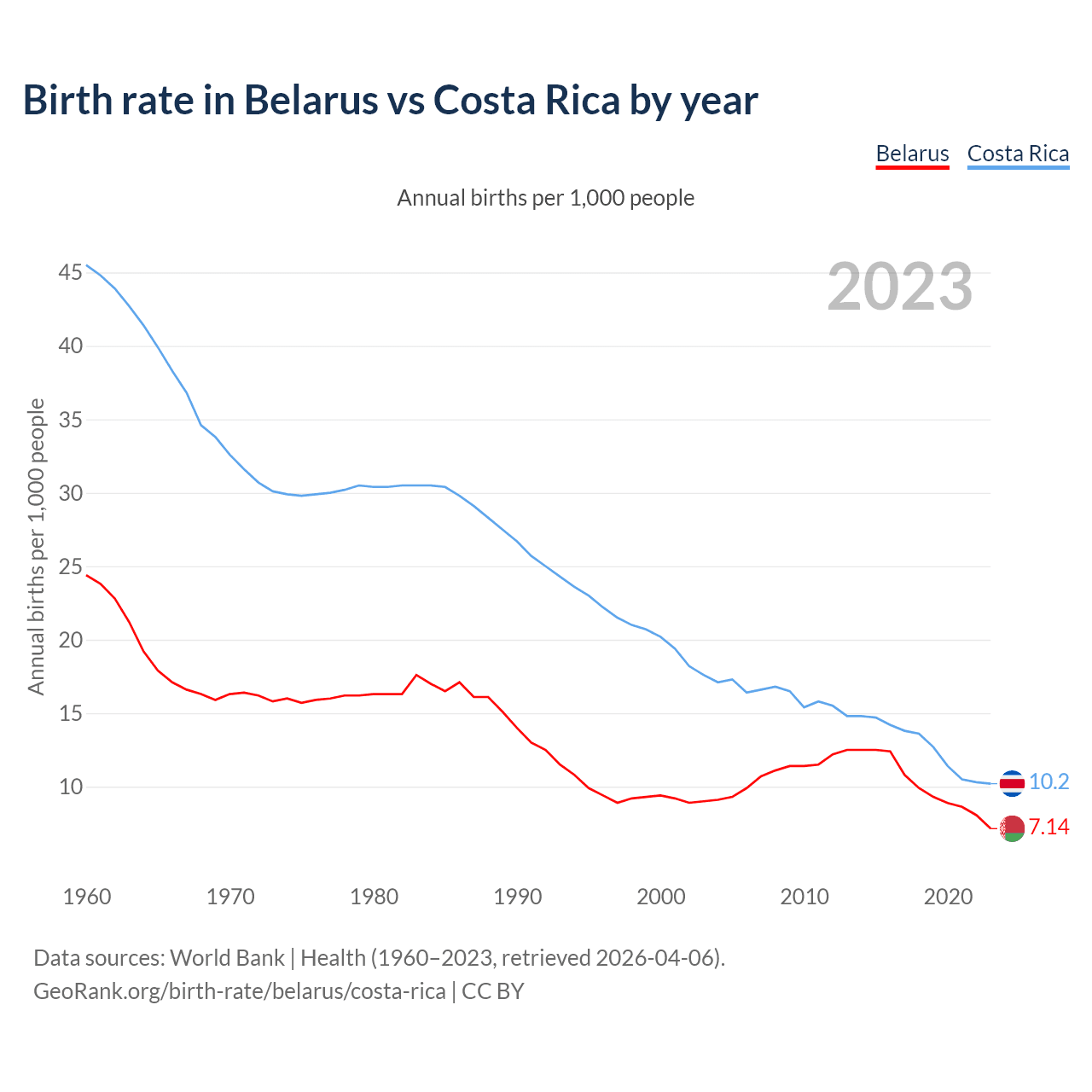 GeoRank.org/birth-rate/belarus/costa-rica | CC BY