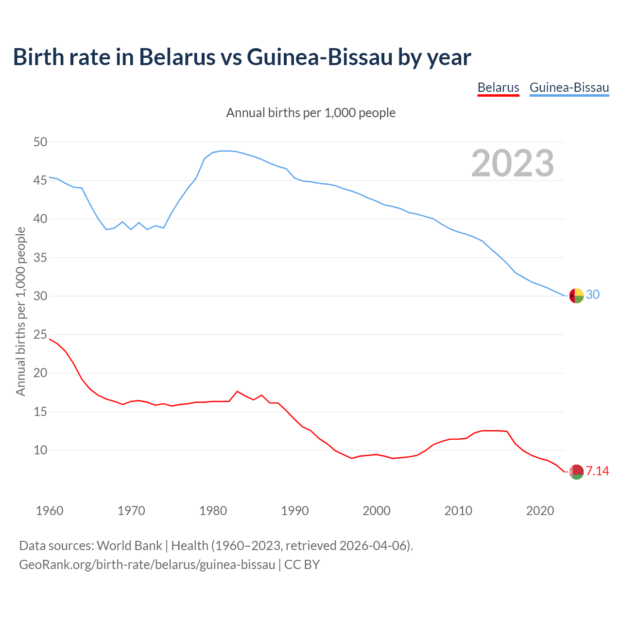 GeoRank.org/birth-rate/belarus/guinea-bissau | CC BY