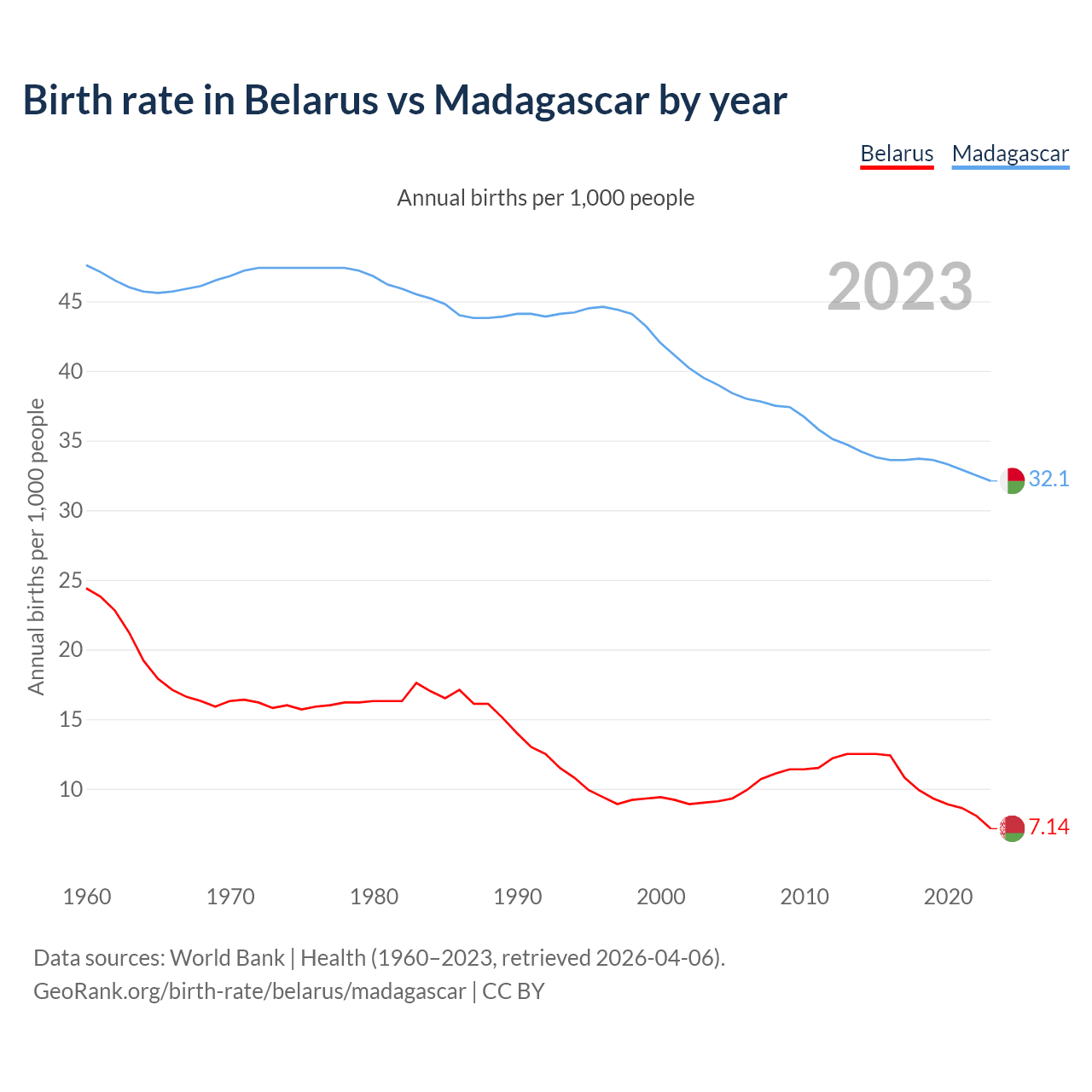 GeoRank.org/birth-rate/belarus/madagascar | CC BY