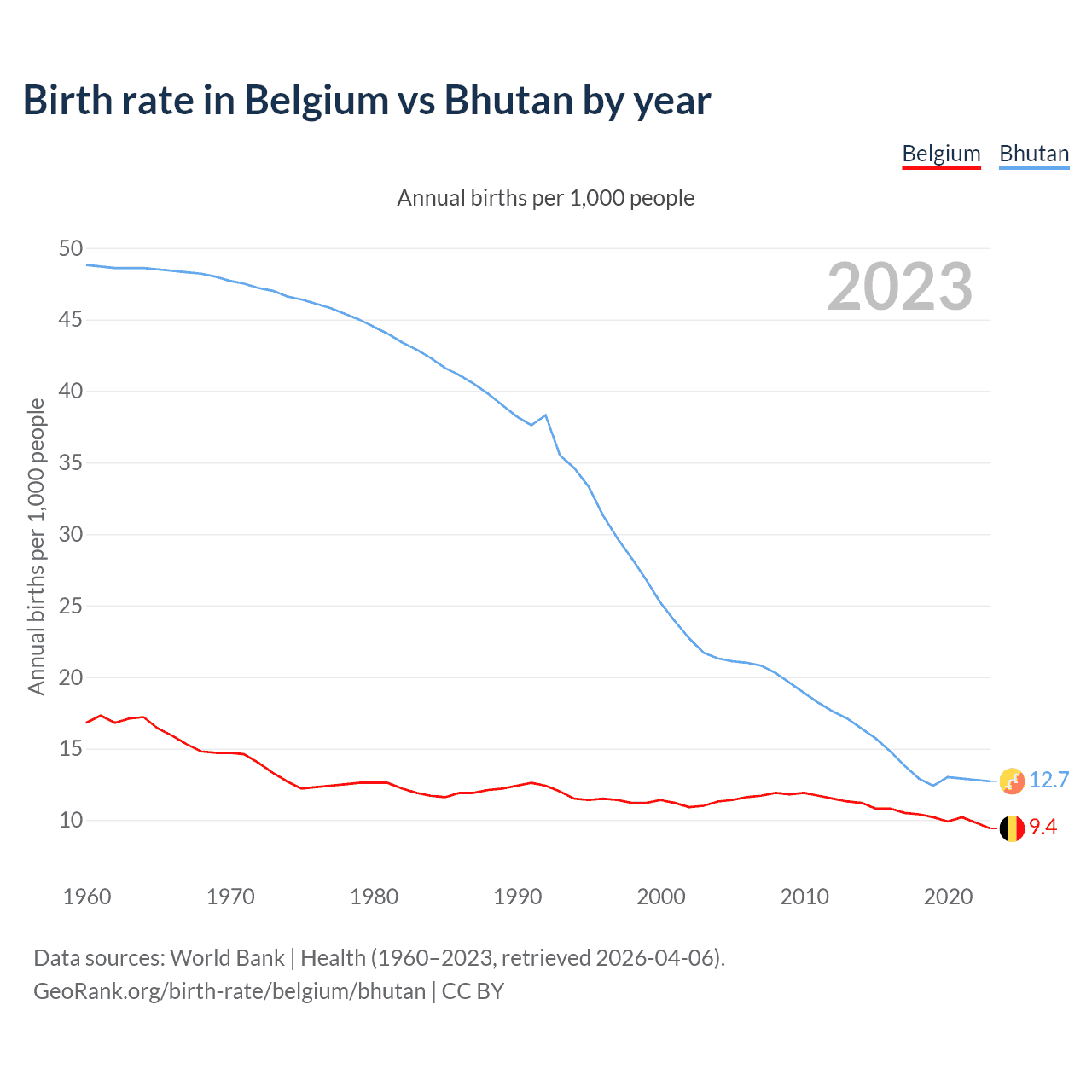 GeoRank.org/birth-rate/belgium/bhutan | CC BY