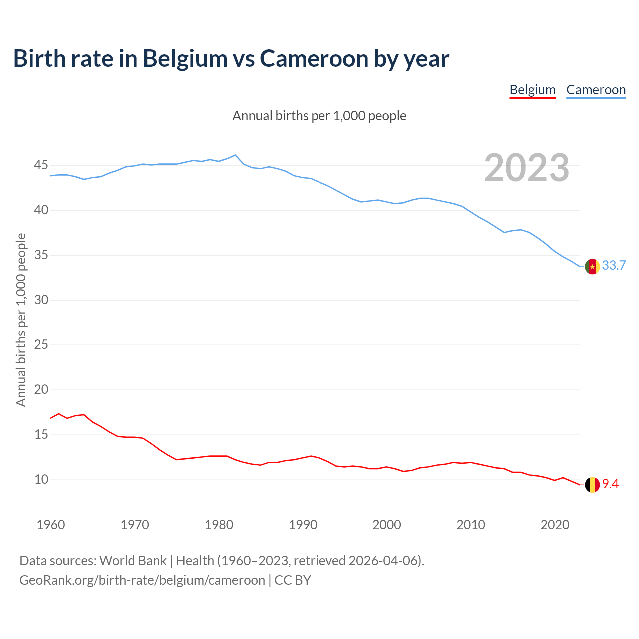 GeoRank.org/birth-rate/belgium/cameroon | CC BY