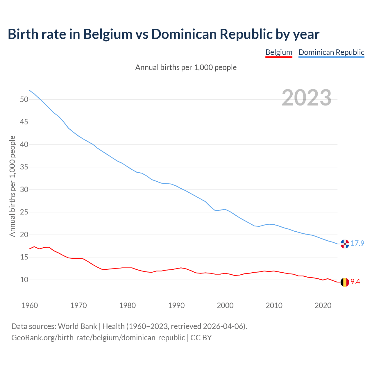 GeoRank.org/birth-rate/belgium/dominican-republic | CC BY