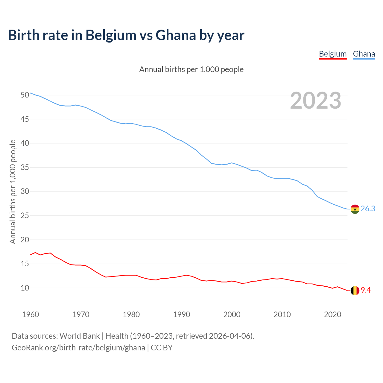 GeoRank.org/birth-rate/belgium/ghana | CC BY