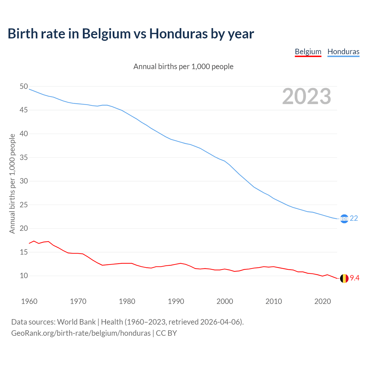 GeoRank.org/birth-rate/belgium/honduras | CC BY