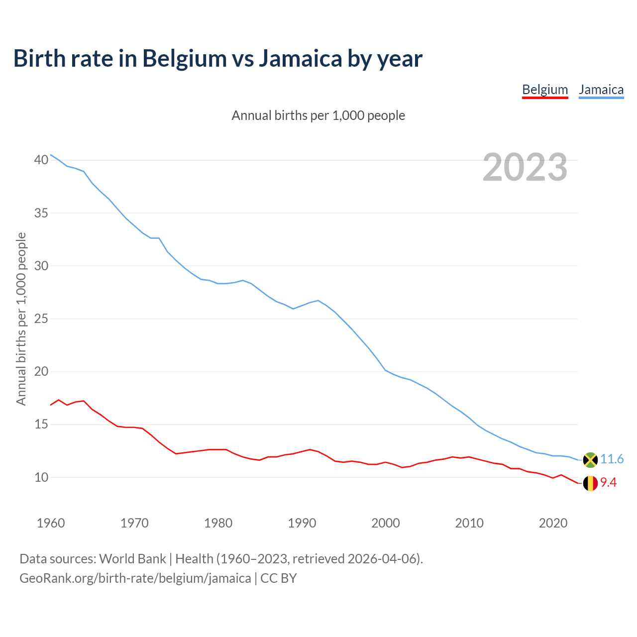 GeoRank.org/birth-rate/belgium/jamaica | CC BY