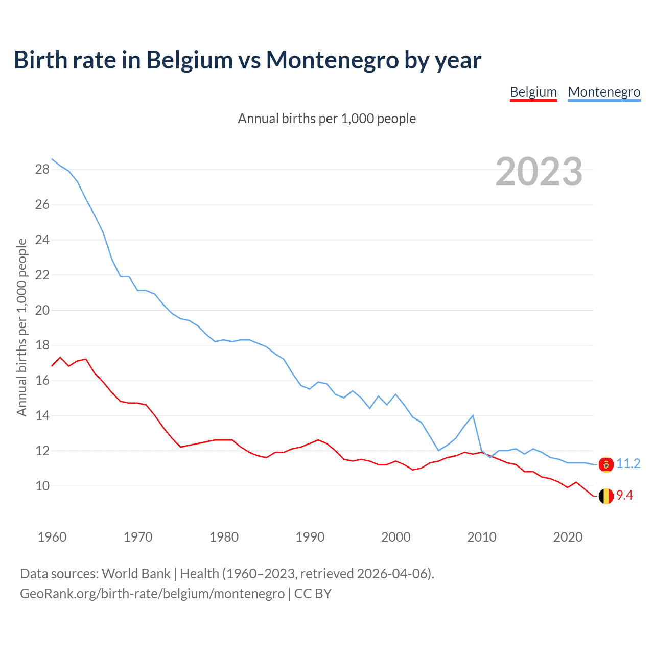 GeoRank.org/birth-rate/belgium/montenegro | CC BY