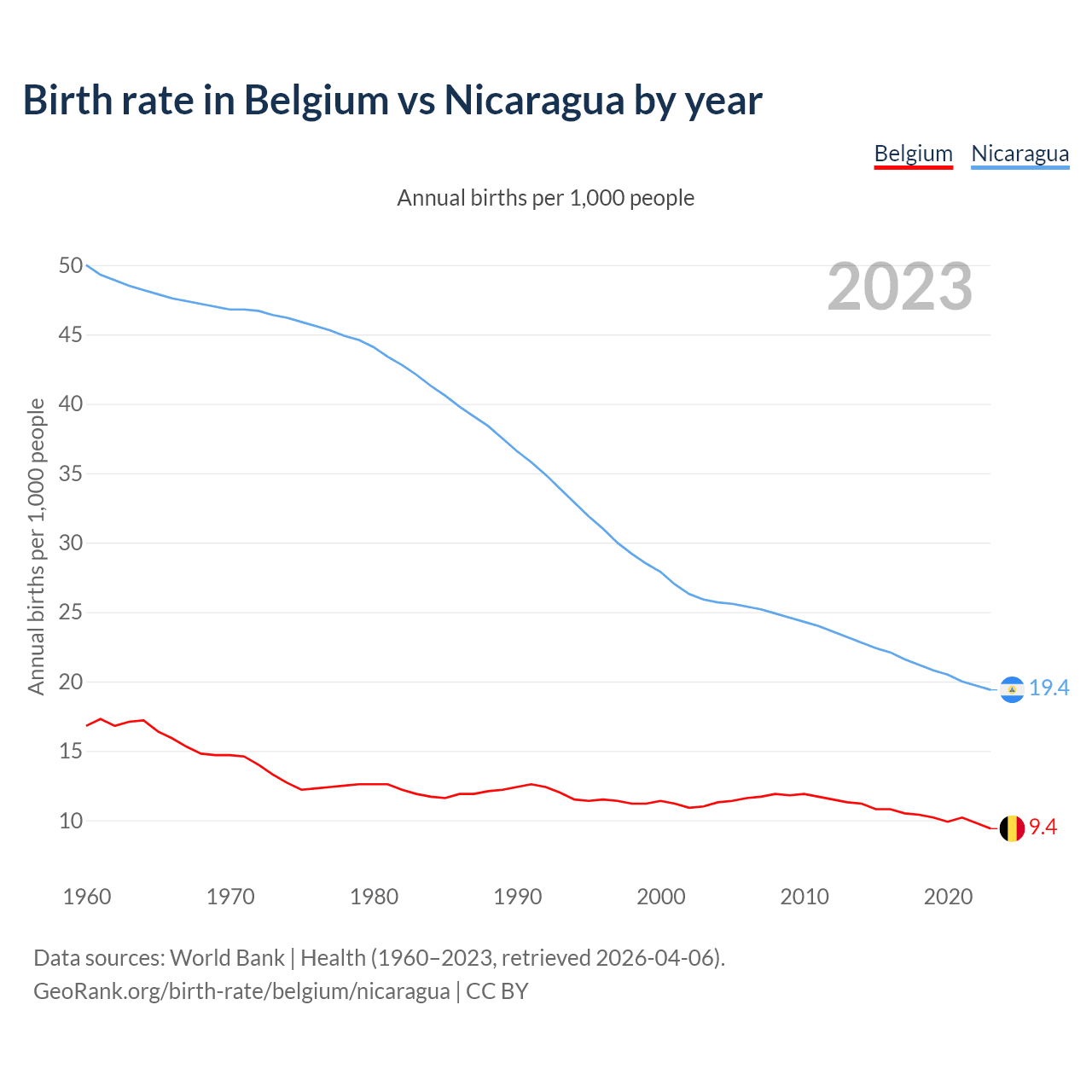 GeoRank.org/birth-rate/belgium/nicaragua | CC BY