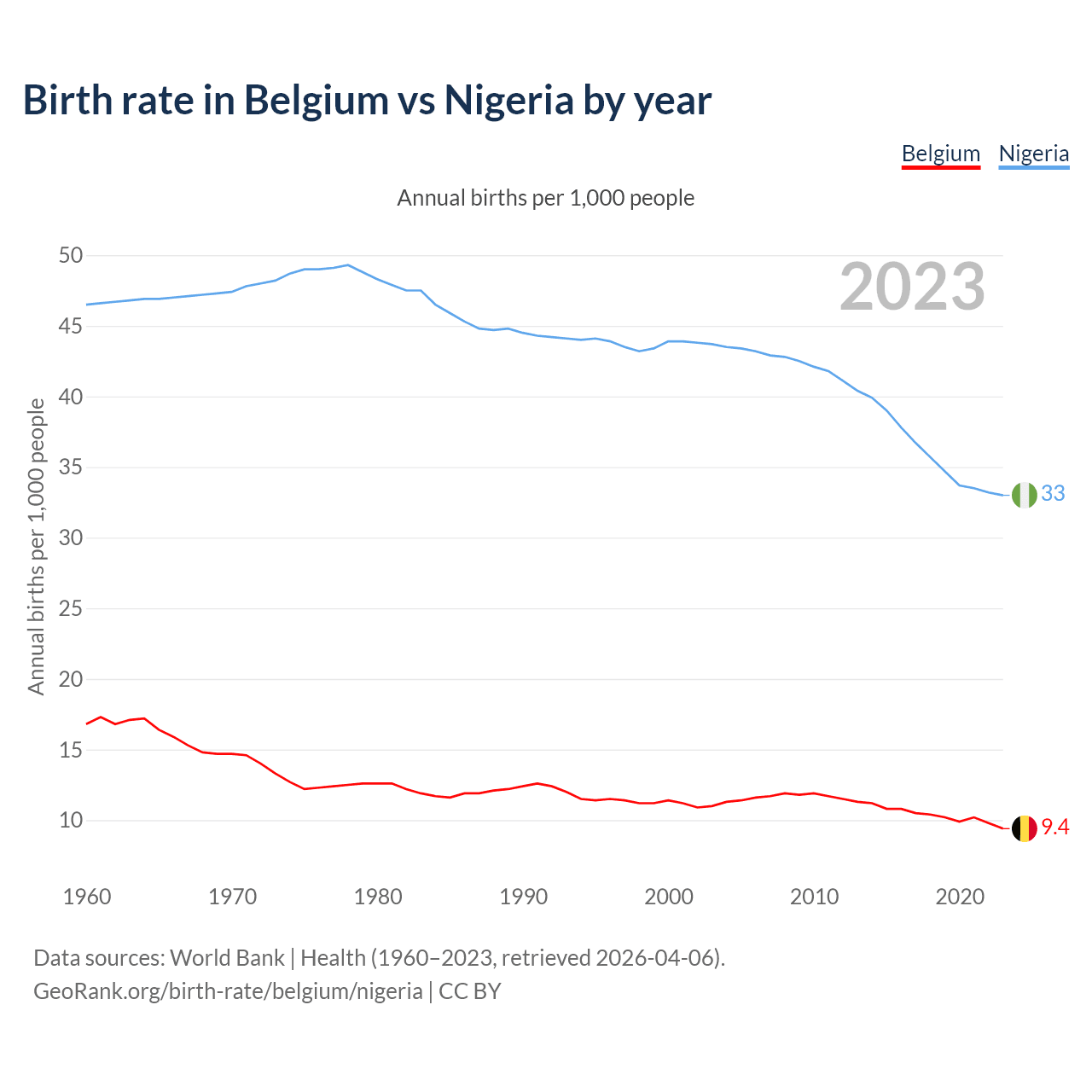 GeoRank.org/birth-rate/belgium/nigeria | CC BY