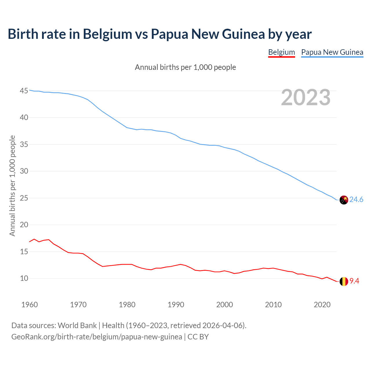 GeoRank.org/birth-rate/belgium/papua-new-guinea | CC BY