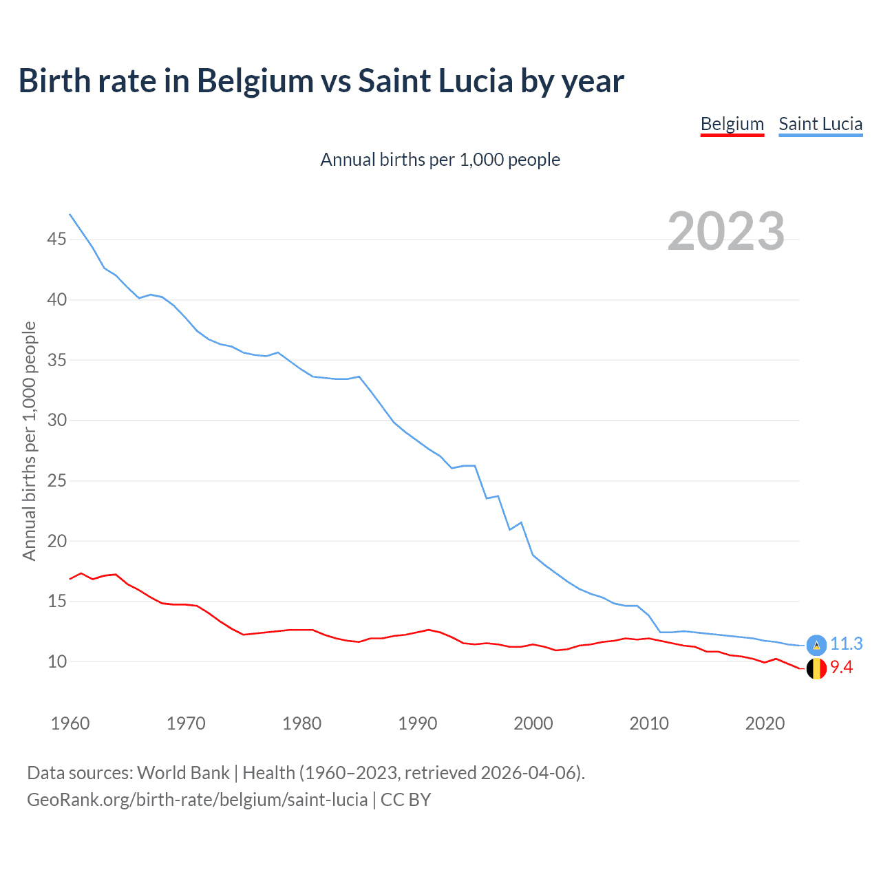GeoRank.org/birth-rate/belgium/saint-lucia | CC BY