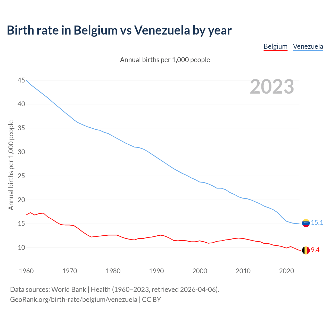 GeoRank.org/birth-rate/belgium/venezuela | CC BY