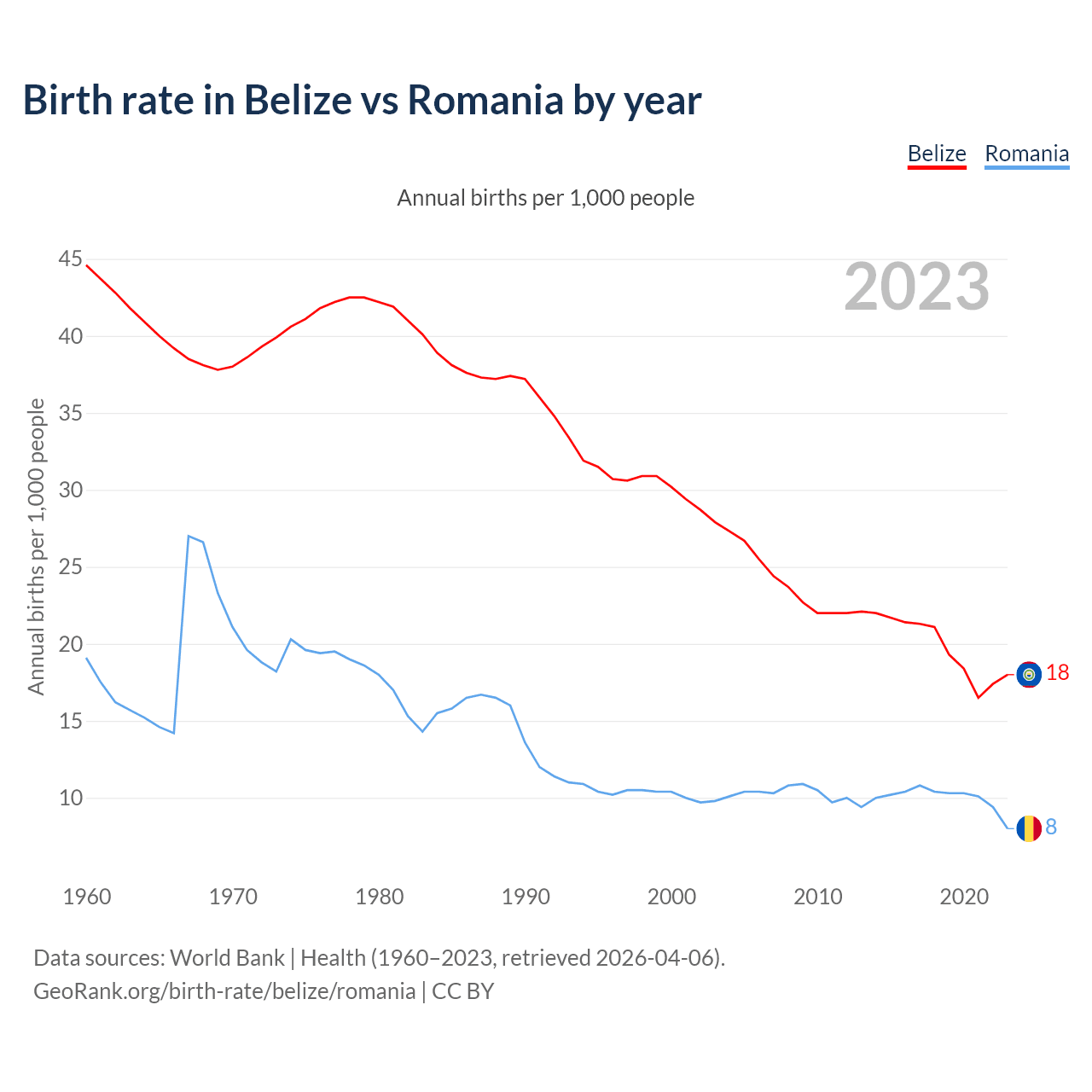 GeoRank.org/birth-rate/belize/romania | CC BY