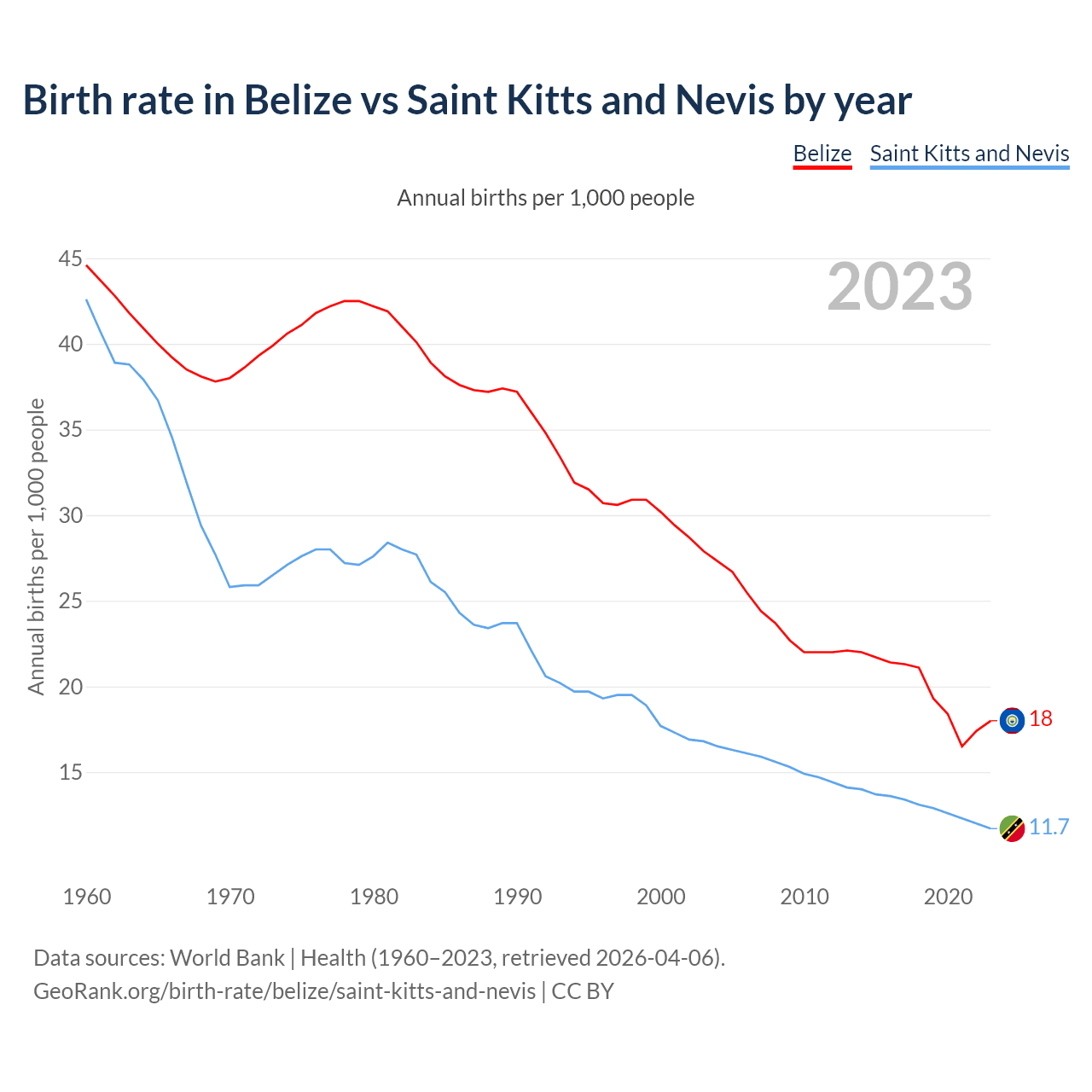 GeoRank.org/birth-rate/belize/saint-kitts-and-nevis | CC BY
