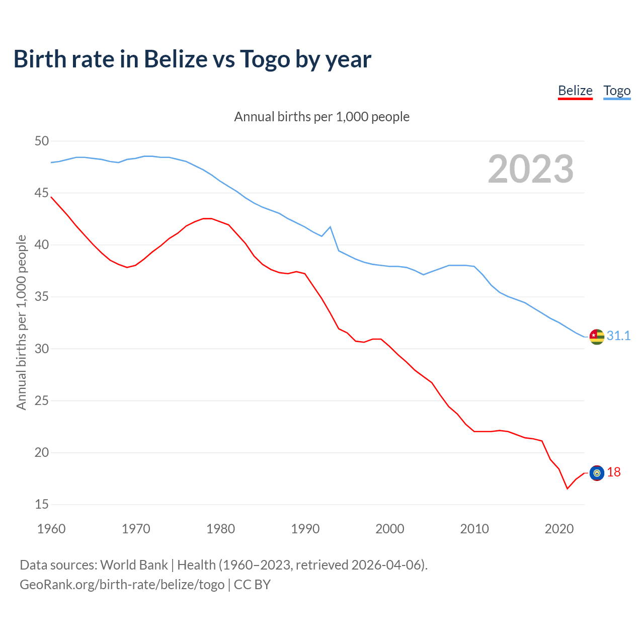 GeoRank.org/birth-rate/belize/togo | CC BY