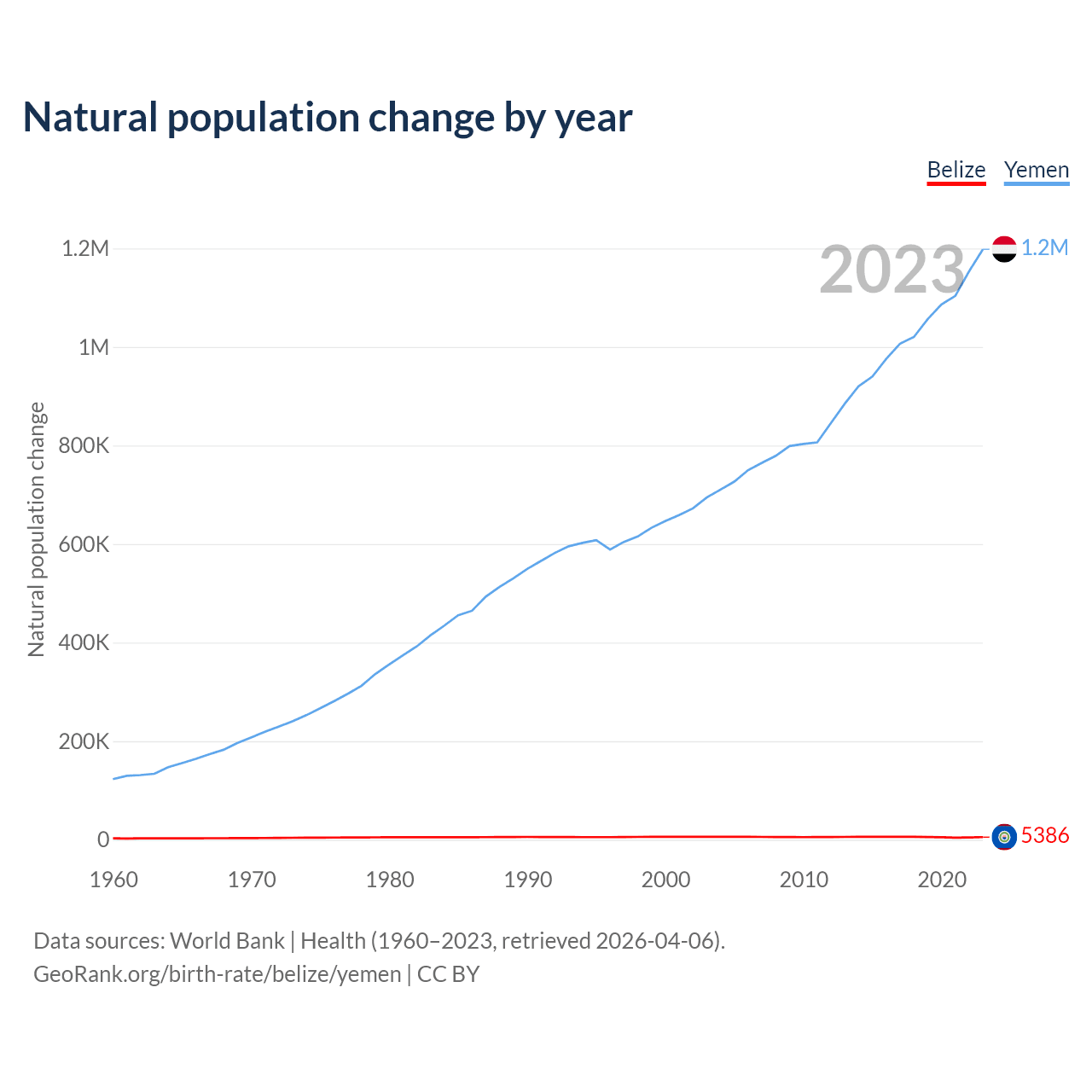 Check Belize vs Yemen population clock for a dynamic visualization of the changing population.
