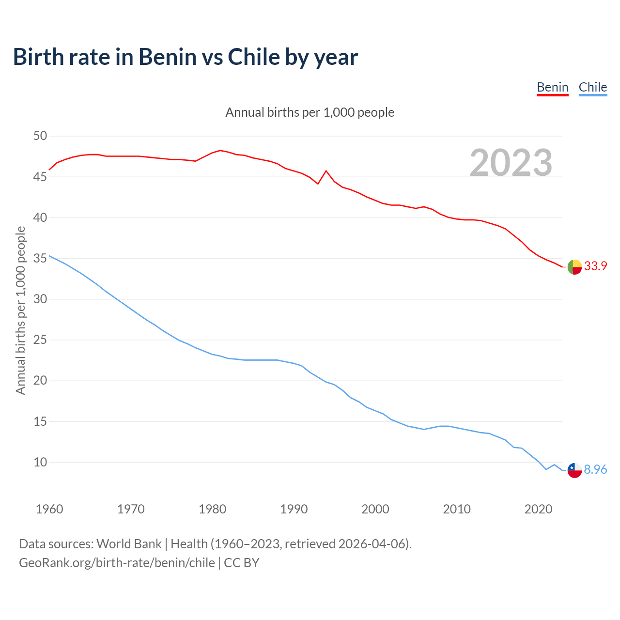 GeoRank.org/birth-rate/benin/chile | CC BY