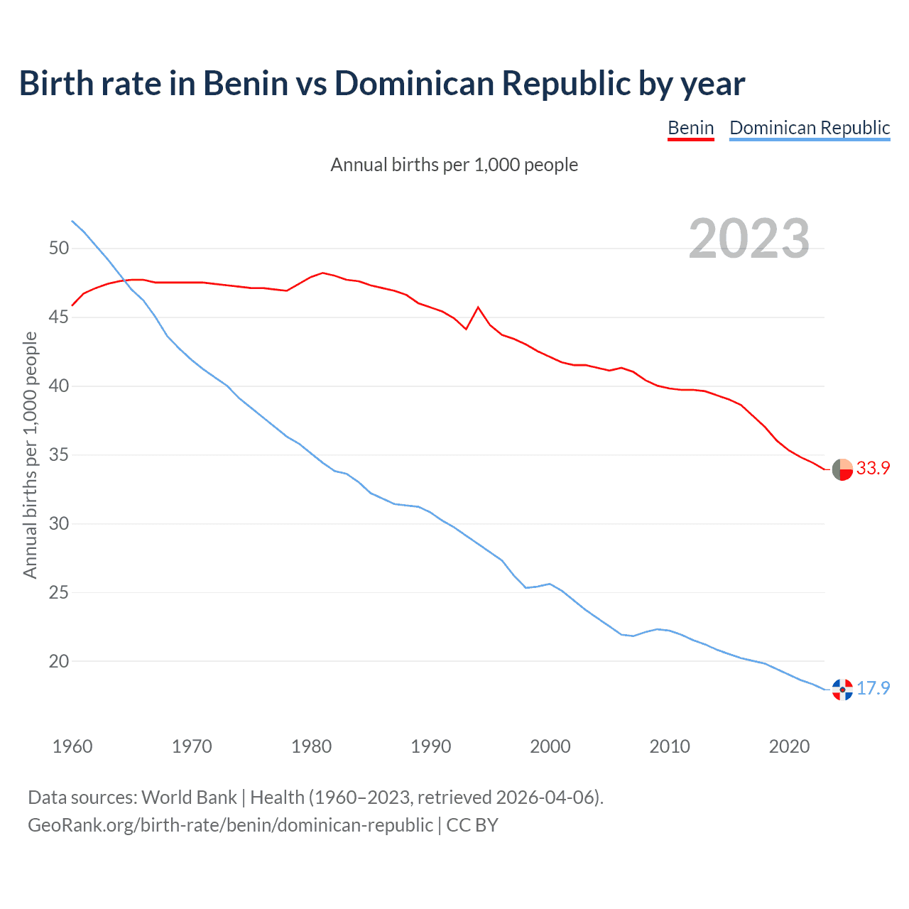 GeoRank.org/birth-rate/benin/dominican-republic | CC BY