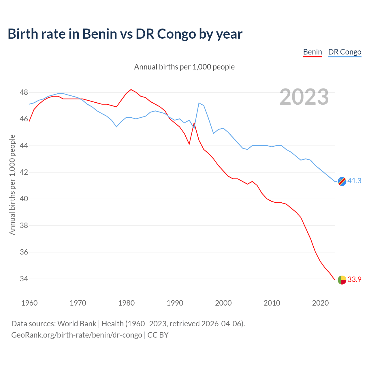 GeoRank.org/birth-rate/benin/dr-congo | CC BY