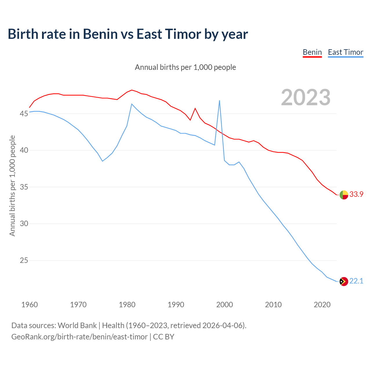GeoRank.org/birth-rate/benin/east-timor | CC BY