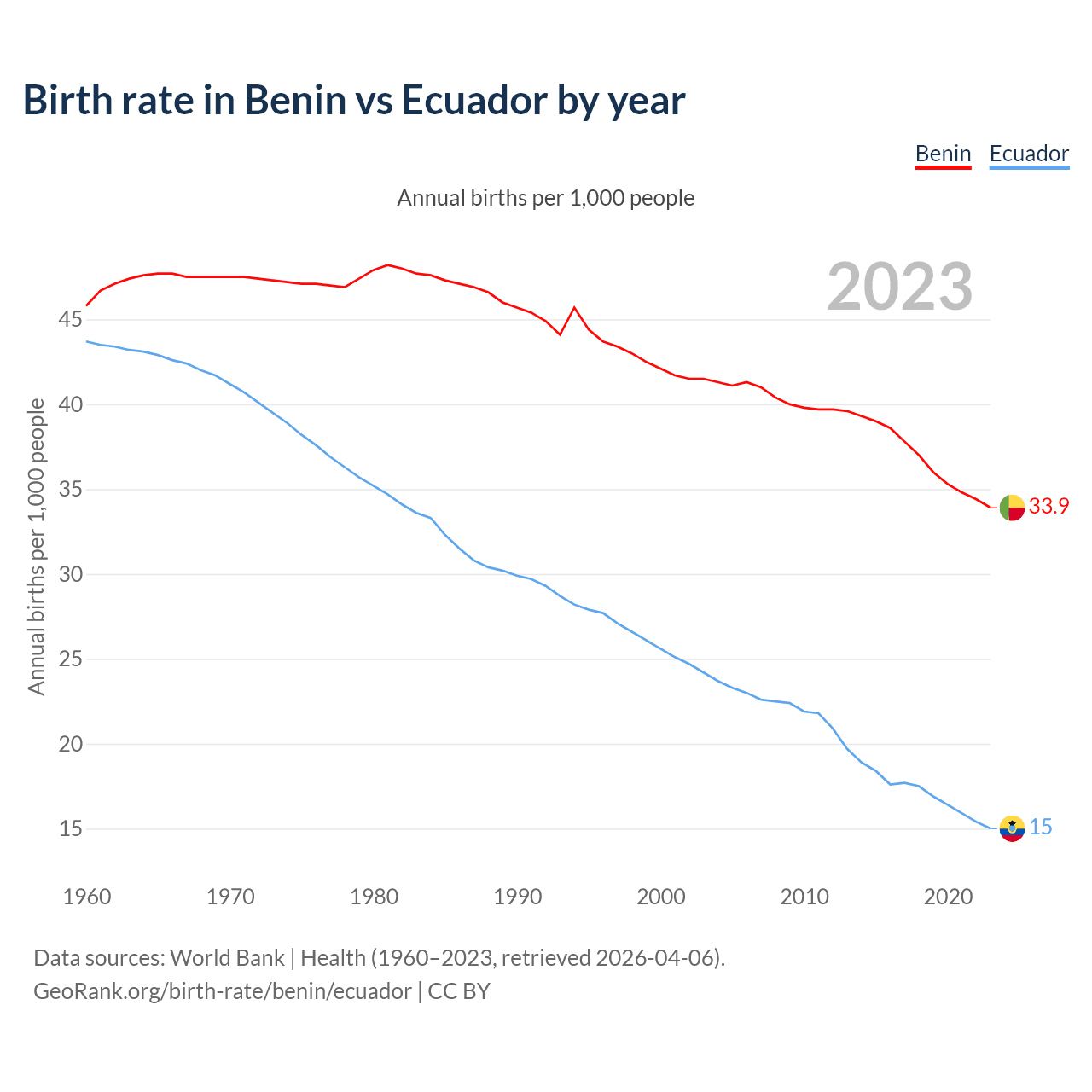 GeoRank.org/birth-rate/benin/ecuador | CC BY