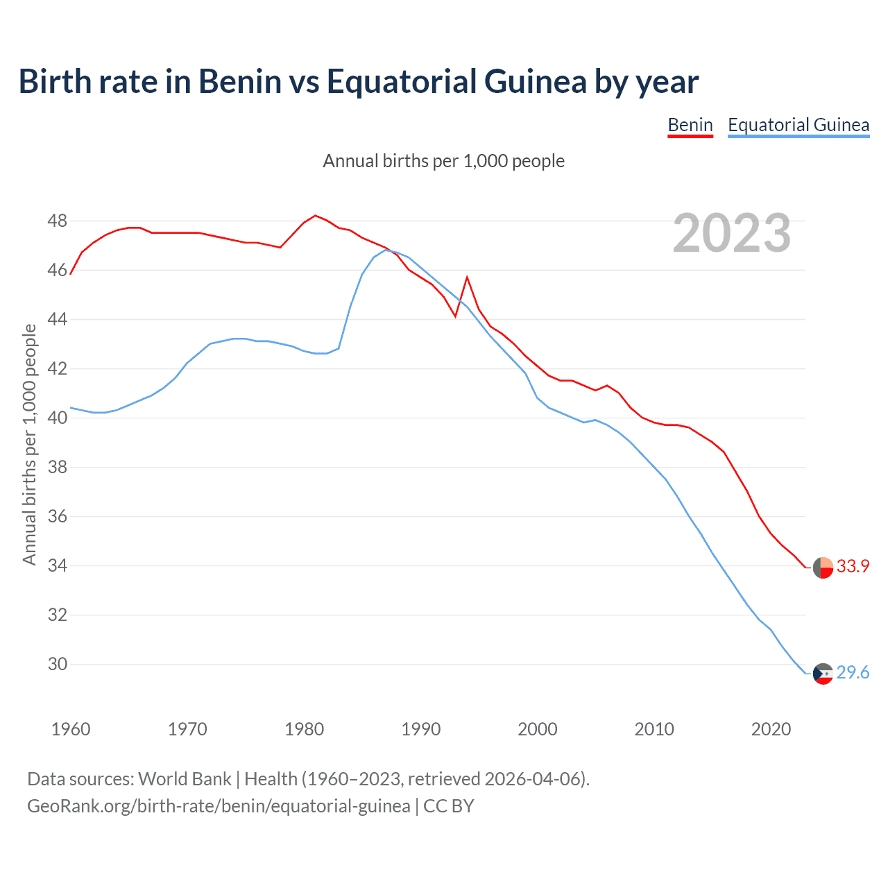 GeoRank.org/birth-rate/benin/equatorial-guinea | CC BY