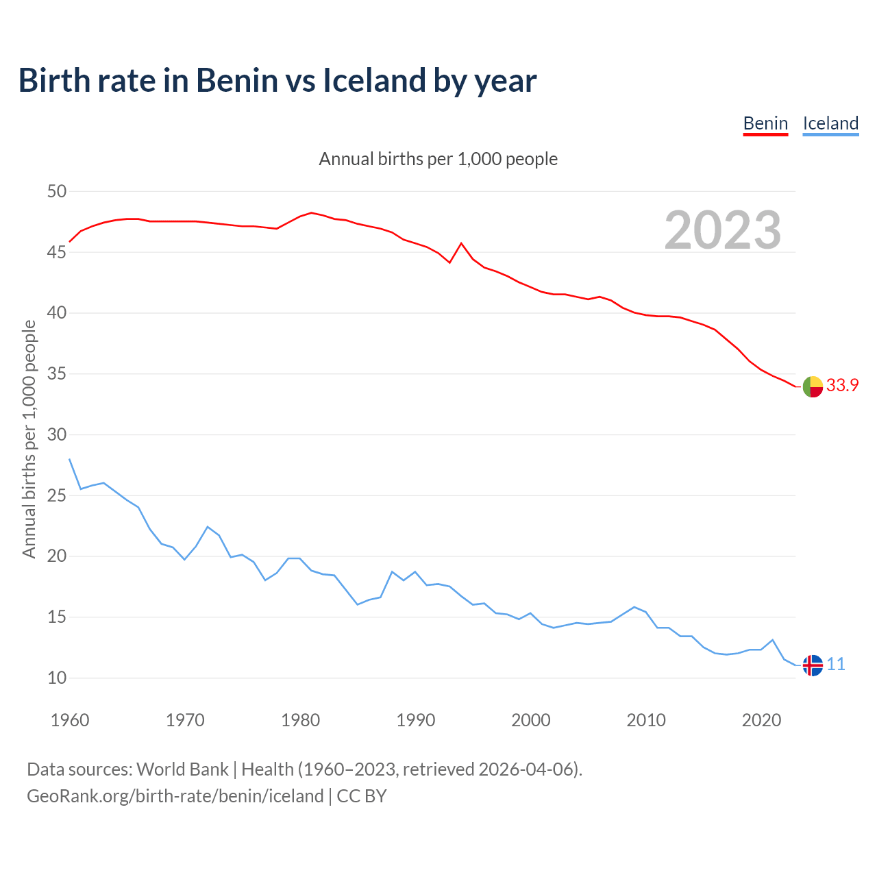 GeoRank.org/birth-rate/benin/iceland | CC BY