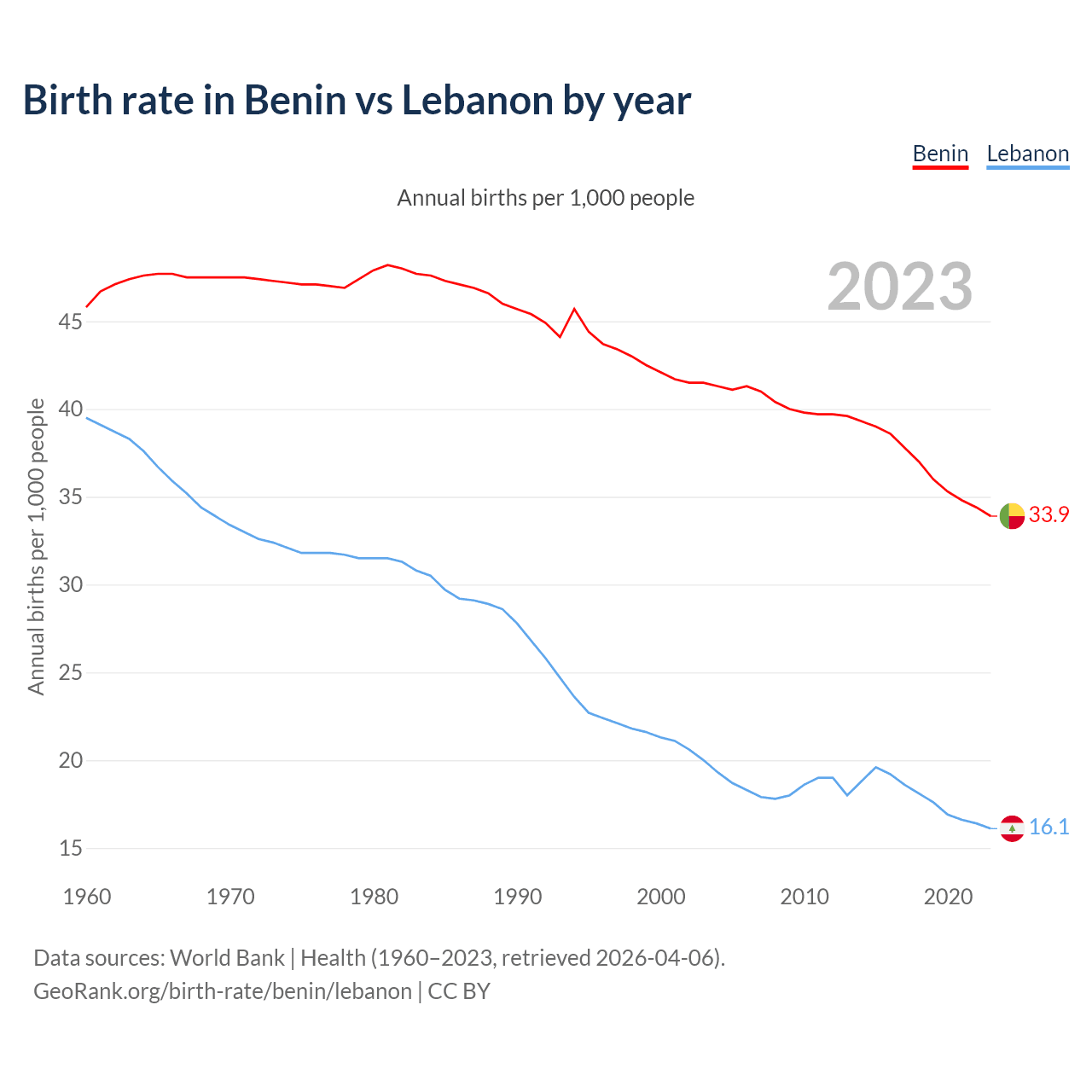 GeoRank.org/birth-rate/benin/lebanon | CC BY
