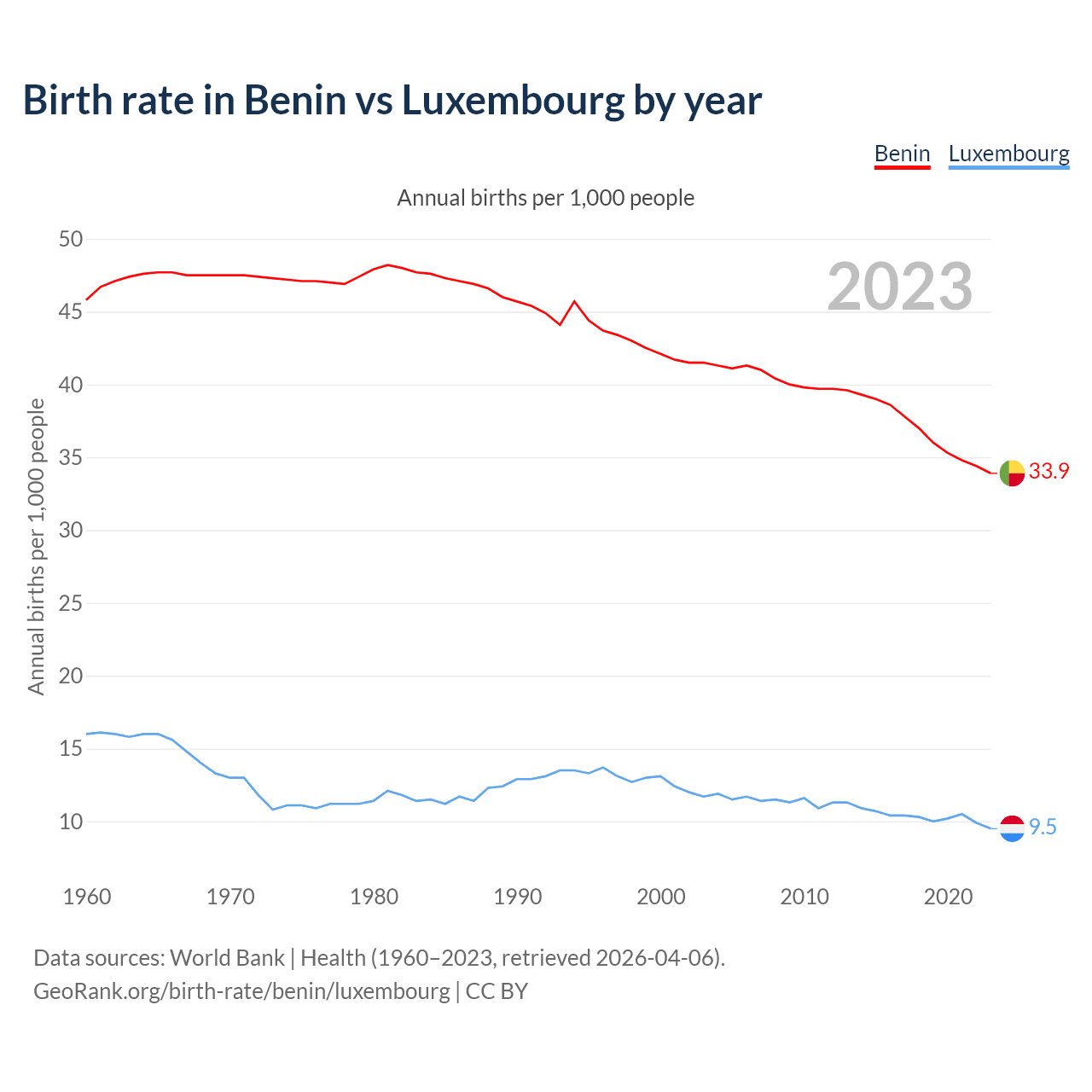 GeoRank.org/birth-rate/benin/luxembourg | CC BY