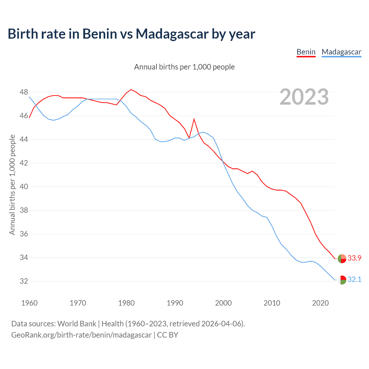 GeoRank.org/birth-rate/benin/madagascar | CC BY