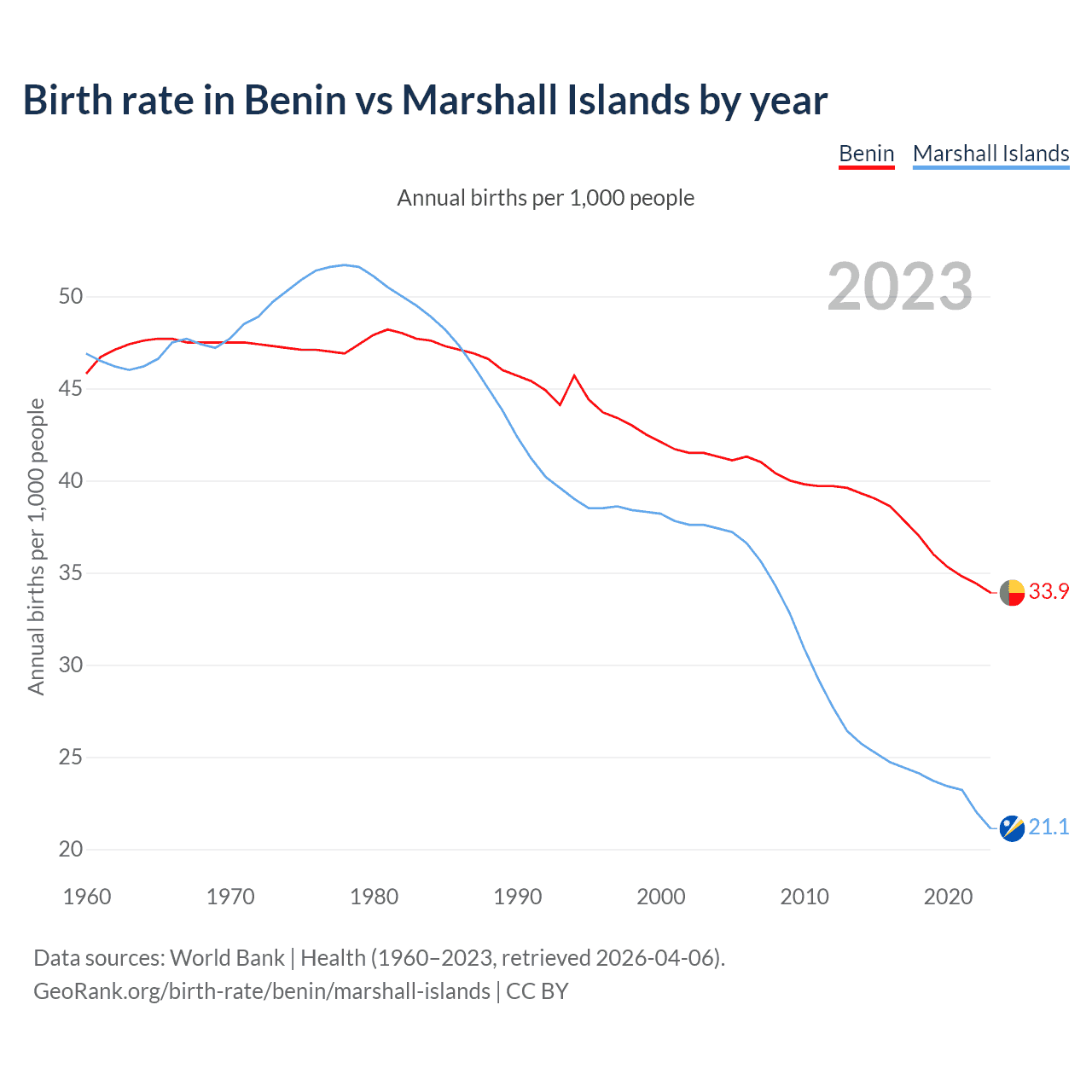 GeoRank.org/birth-rate/benin/marshall-islands | CC BY