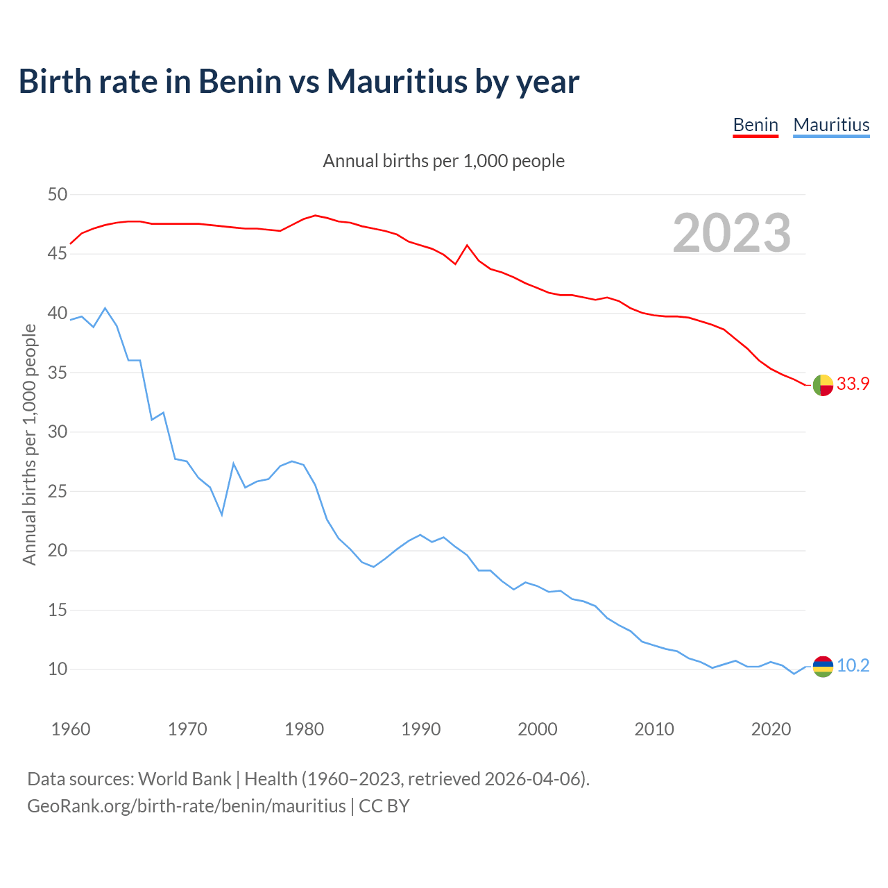 GeoRank.org/birth-rate/benin/mauritius | CC BY