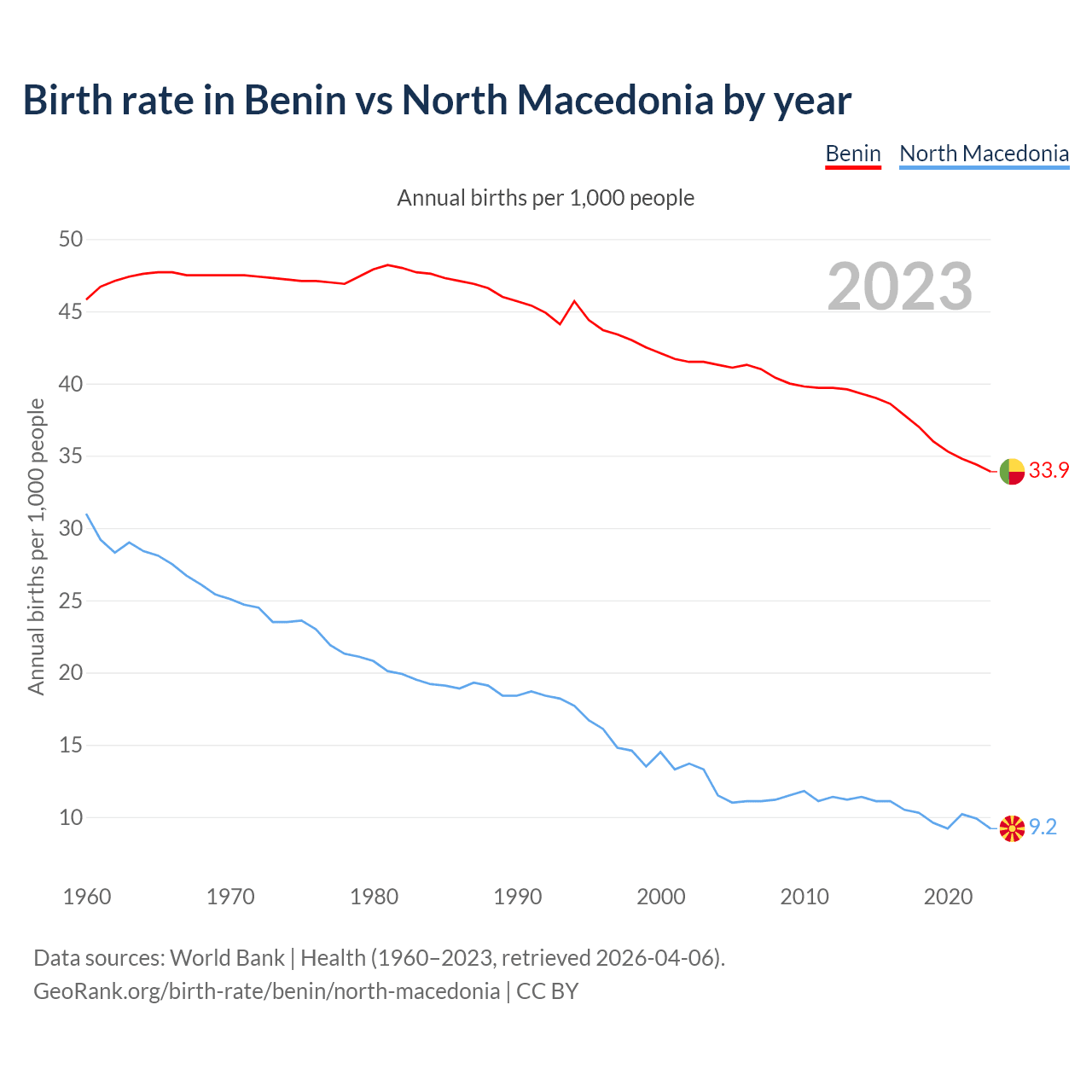 GeoRank.org/birth-rate/benin/north-macedonia | CC BY