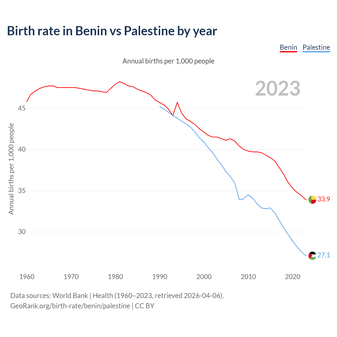 GeoRank.org/birth-rate/benin/palestine | CC BY