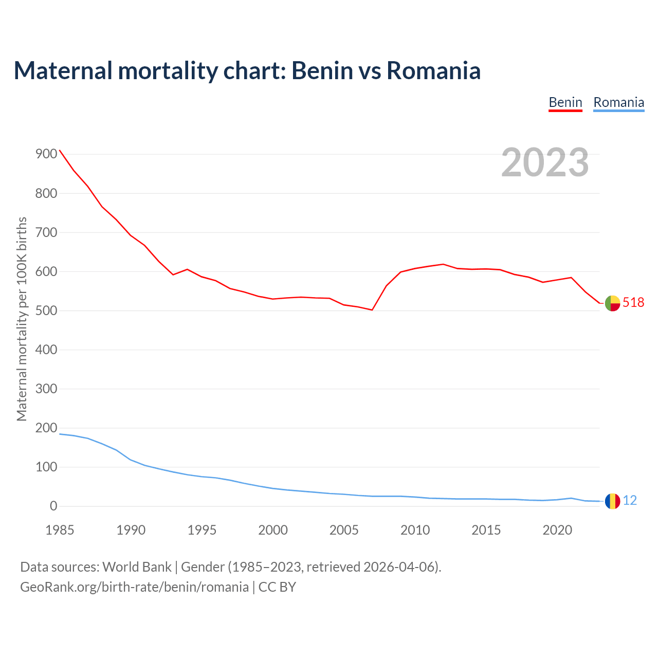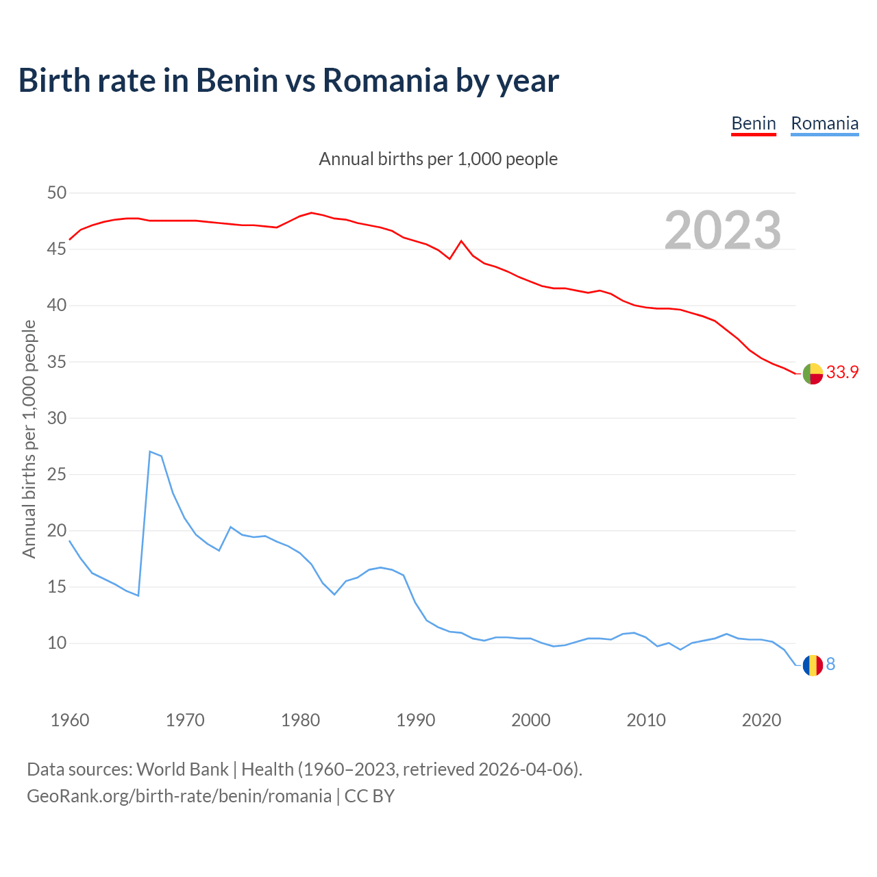 GeoRank.org/birth-rate/benin/romania | CC BY