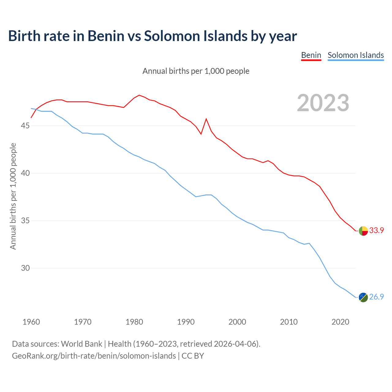 GeoRank.org/birth-rate/benin/solomon-islands | CC BY