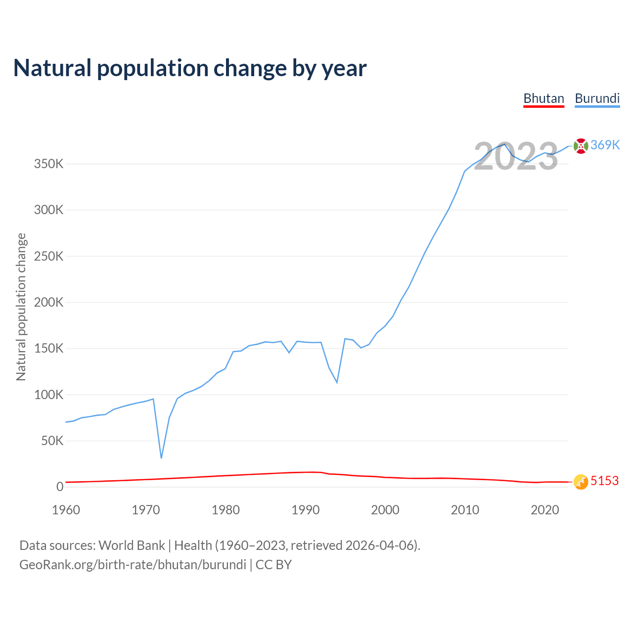 - Bhutan is ranked 110/196 by birth rate compared to 17/196 for Burundi.