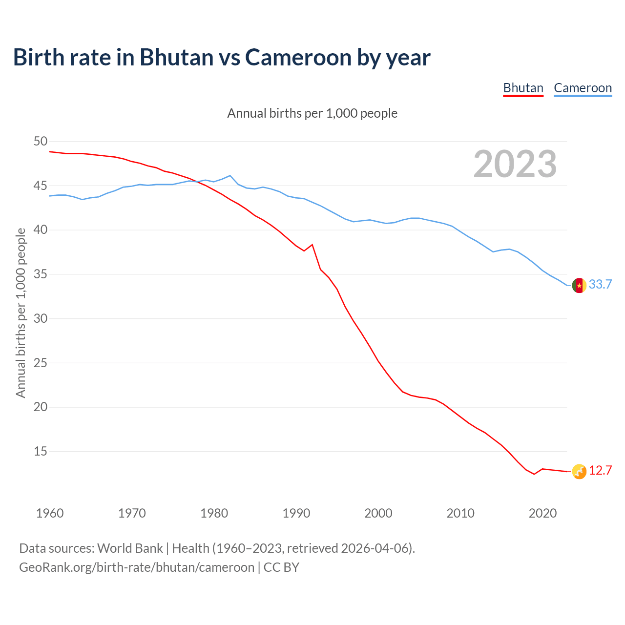 GeoRank.org/birth-rate/bhutan/cameroon | CC BY