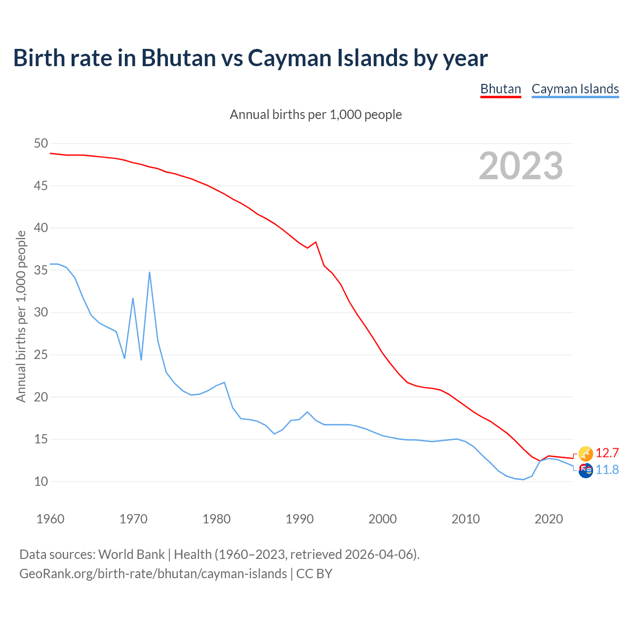 GeoRank.org/birth-rate/bhutan/cayman-islands | CC BY
