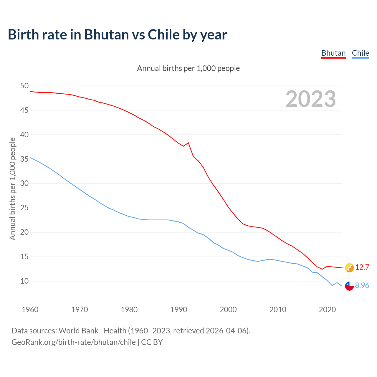 GeoRank.org/birth-rate/bhutan/chile | CC BY