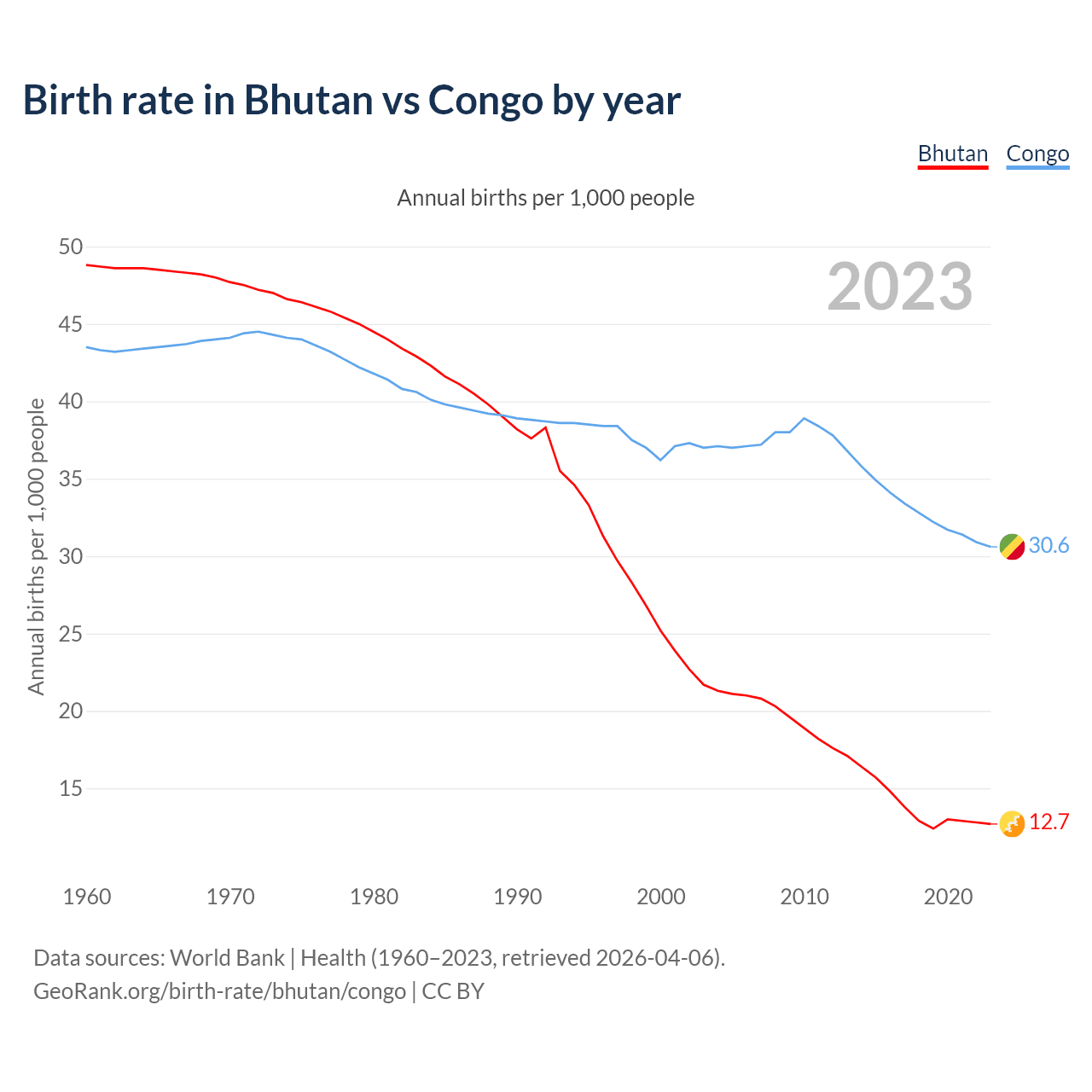 GeoRank.org/birth-rate/bhutan/congo | CC BY