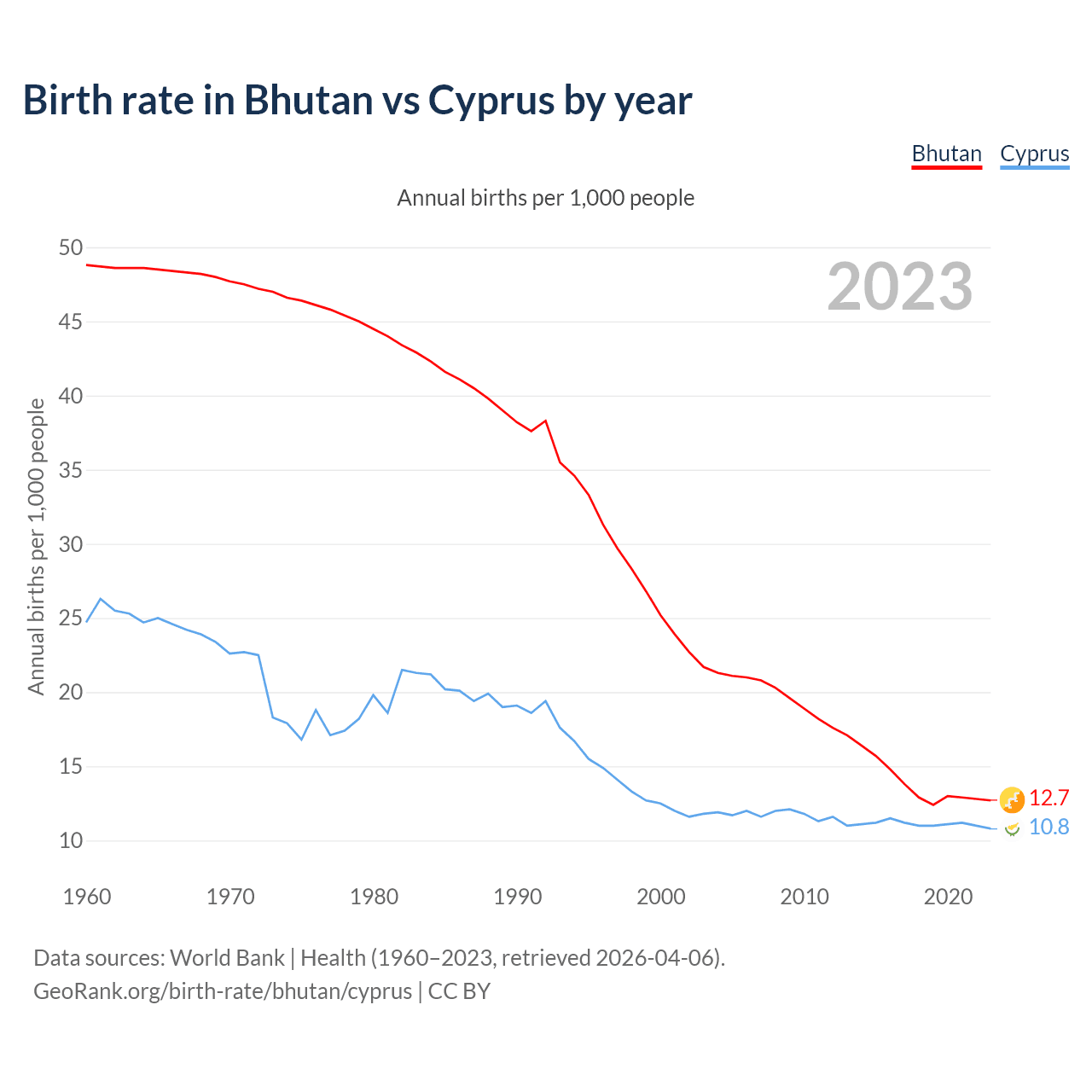 GeoRank.org/birth-rate/bhutan/cyprus | CC BY