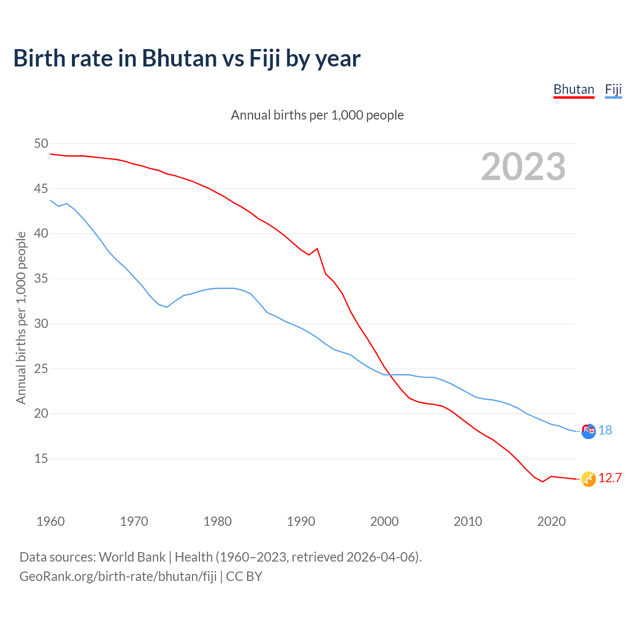GeoRank.org/birth-rate/bhutan/fiji | CC BY