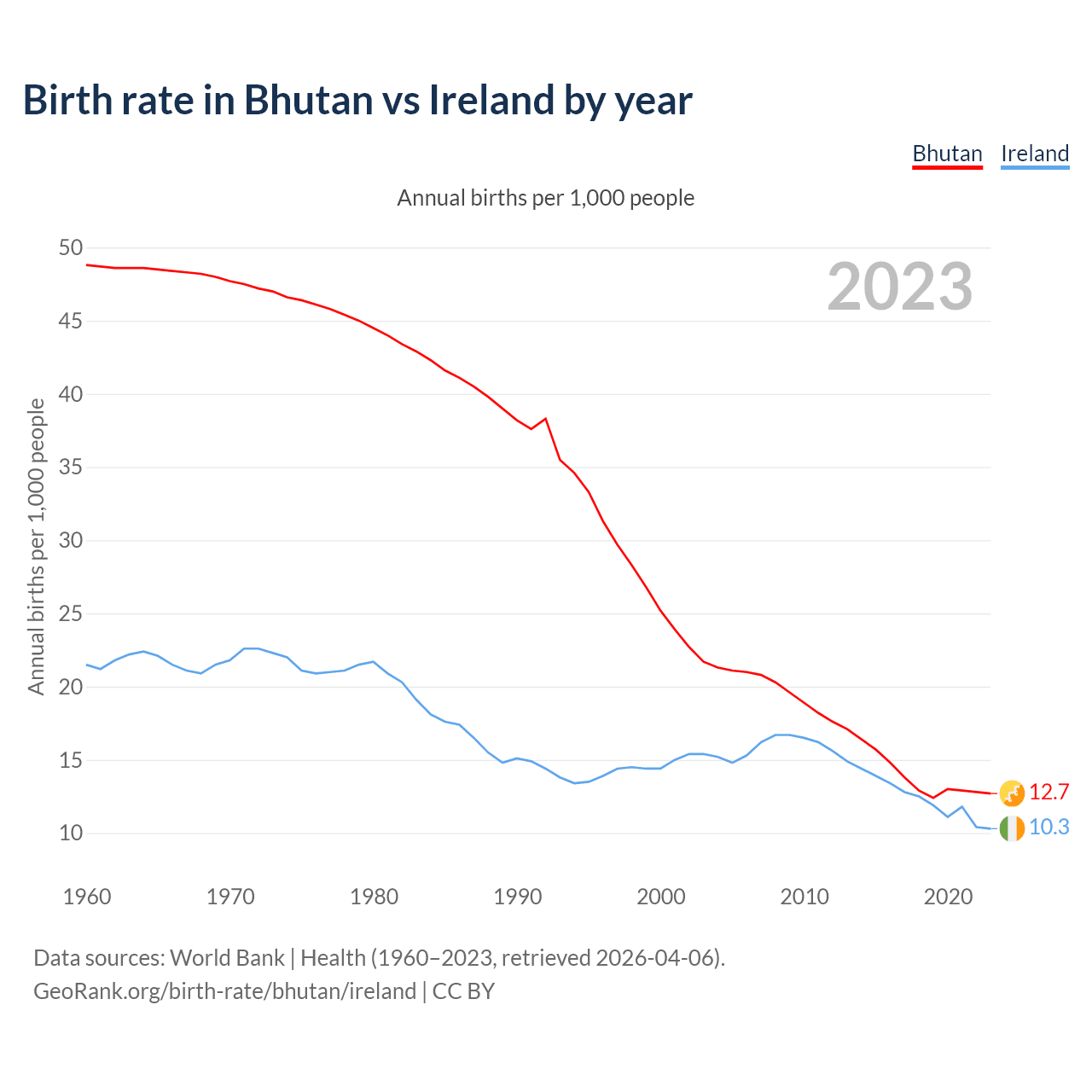 GeoRank.org/birth-rate/bhutan/ireland | CC BY