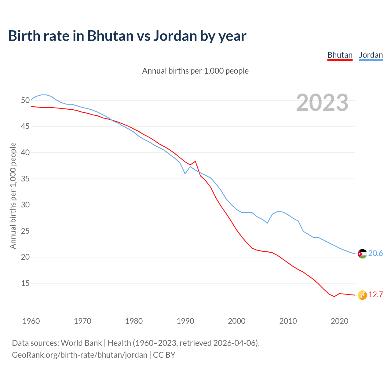 GeoRank.org/birth-rate/bhutan/jordan | CC BY