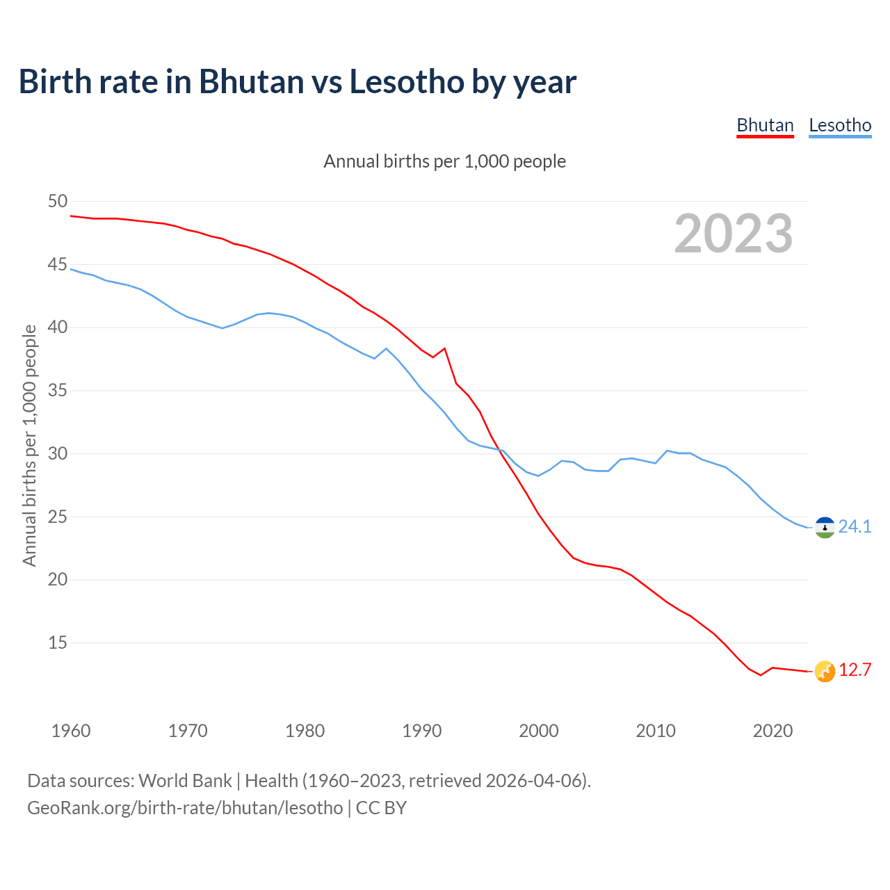 GeoRank.org/birth-rate/bhutan/lesotho | CC BY