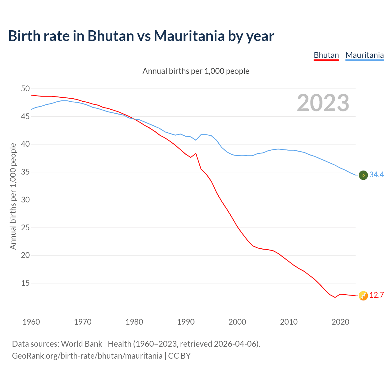 GeoRank.org/birth-rate/bhutan/mauritania | CC BY
